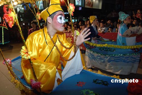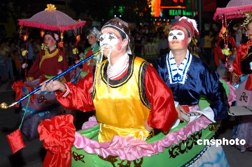 6月16日晚,一场精彩的民俗踩街活动在福建福鼎举行,约18万人走上街头观看踩街活动表演。(王东明)
