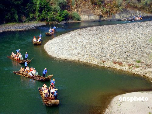 九曲溪发源于武夷山森林茂密的西部,水量充沛,水质清澈,全长62.8公里,流经中部的生态保护区,蜿蜒于东部丹霞地貌,分布峦岩壑间和深刻的断裂方向控制下,形成深切河曲,在峰峦岩壑间萦回环绕,9.5公里的河曲,直线距离只有5公里,曲率达1.9公里。九曲溪两岸是典型的单斜丹霞地貌,分布着36奇峰、99 岩,所有峰岩顶斜、身陡、麓缓,昂首向东,如万马奔腾,气势雄伟,千姿百态。(王商林)