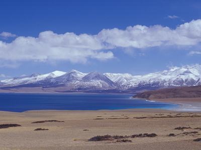 距神山不远,是被世人称为“圣湖”的玛旁雍措,这座高原湖海拔4588米,面积412平方公里。若论其大、深、高、美,玛旁雍措都难称高原湖泊之最,唯有其神、其名,使它成为圣湖、神湖,许多宗教典籍和传说中都曾记载描述过它。印度传说中称 这里是湿婆大神和他的妻子-喜玛拉雅山的女儿乌玛女神沐浴的地方,而西藏的古代传说认为这里是广财龙神居住的地方。蓝天白云下的神湖,美若仙境,幽蓝的湖面碧波轻荡,湖周远山隐约可见。玛旁雍措又称玛法雍措,藏语意为“永恒不败的玉湖”,据说这是为纪念11世纪佛教战胜当地本教所取的名字。唐朝高僧玄奘在其所著《大唐西域记》中对玛旁雍措也有所描写,将这里称为“西天瑶池”。佛教经典中将一处湖泊称为“世界江河之母”,所指就是与神山并列齐名的“圣湖”-玛旁雍措。