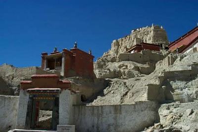 从山下到山顶王宫,只有一条人工开凿的暗道可以通达,古格遗址的顶端是王室成员居住的冬宫、夏宫,现已空空荡荡,有其名而无其实了,只有坛城内的壁画和木雕保存完好,图案千姿百态,堪称一绝。古格的彩画、壁画和雕塑内容极为丰富,具有很高的艺术 水准和研究价值。