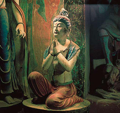 敦煌莫高窟第384窟彩塑供养菩萨像,开凿于盛唐