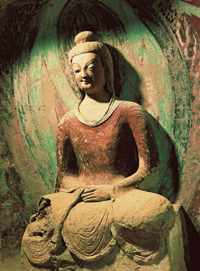 敦煌莫高窟第259窟,开凿于384-534年,此为窟内彩塑佛像,是莫高窟早期雕塑的精品