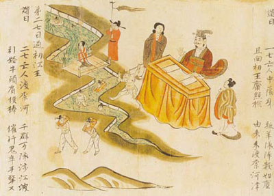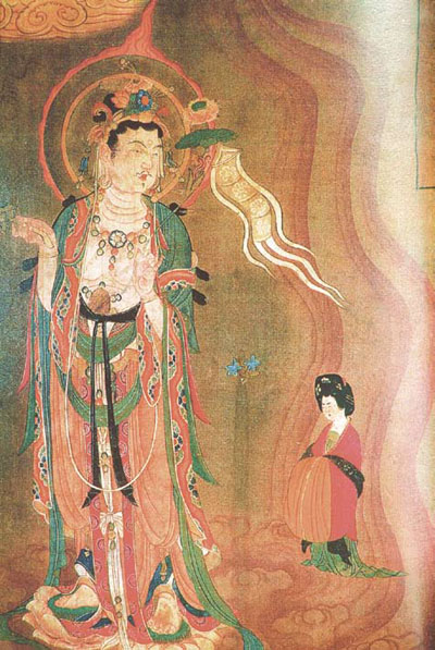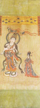 敦煌藏经洞出土的唐代绢画,描绘菩萨为世俗妇人亡灵引路
