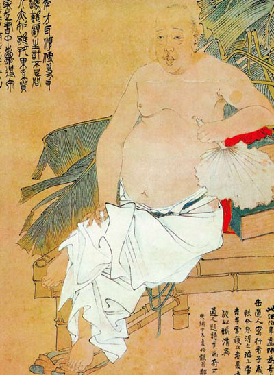 任伯年为吴昌硕作肖像画《蕉荫纳凉图》轴(局部),浙江省博物馆所藏
