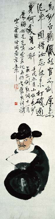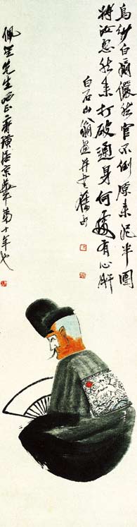 齐白石《不倒翁》(128cm×33cm),1926年作