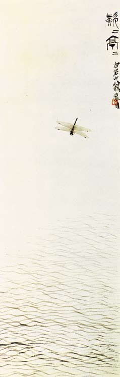 齐白石《蜻蜓戏水图》(101c m×32.4c m),约作于20世纪30年代中期