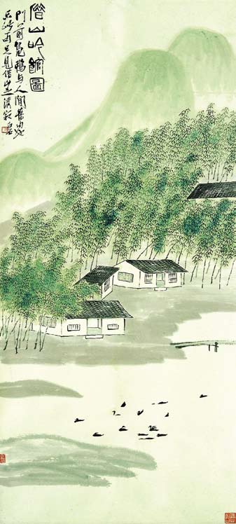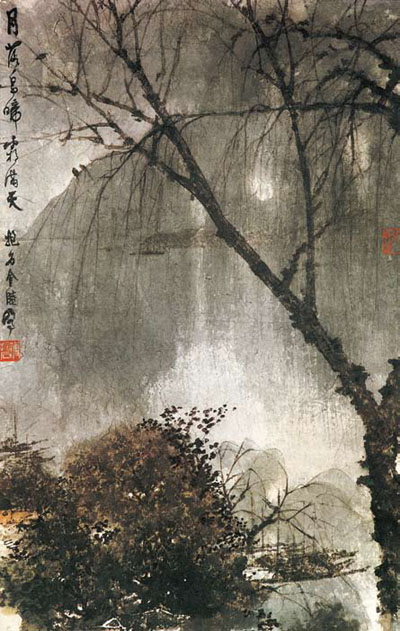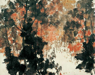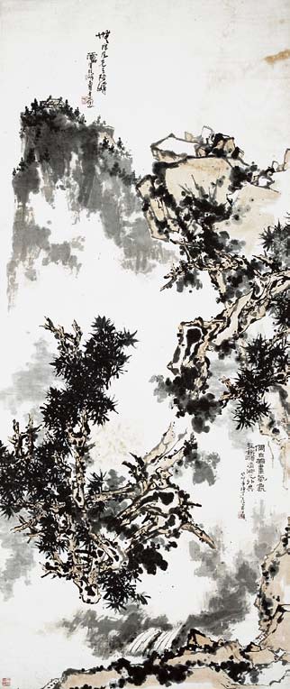 还有两位天才型的大师潘天寿(1897-1971年)和傅抱石(1904-1965年)。对于潘天寿的画,王伯敏评论说:“论评艺术品,民国期间,常有人以‘厚、重、大’为品评标准。若以此而论,潘天寿的画,正可谓‘厚、重、大’,尤其是‘大’,时人无有出其右者。即使他画小品,也有评者以为‘小中见大’,这个‘大’,还不在于画幅的大小,而在于他的‘强其骨’,在于他的毫端有‘力’、有‘气’和有‘势’。”“强其骨,虚其心”是老子的思想,意思是既要有健全强悍的骨骼或坚韧的“骨气”,又要虚怀若谷,追求空灵的心境。潘天寿的气质中有农民的朴厚,他的学养却完全是文人的。他融南北宗于一,突破明清以来花鸟画清丽柔美的风范,创造了奇险雄劲的风格,其画以花鸟、竹石为母题,其强悍的架构足与硬材质雕塑相匹敌,却往往展现出清新旷达、仿佛包裹着晨雾的境界。傅抱石是石涛的热烈崇拜者,以至将原名“瑞麟”改为“抱石”。他平时嗜酒,酒后舞笔挥墨,是一位极具诗人气质和浪漫性情的艺术家。他曾赴日本学习西画,善于用色彩和调性控制画面气氛,所作山水潇洒奔放,酣畅淋漓;人物画竟越过自宋代以降萎靡不振的风度,直追远古画圣顾恺之,用几乎失传的“高古游丝描”法,绘《九歌》、《丽人行》,极为洒脱,古雅而高贵。潘天寿、傅抱石的绘画,主旨上虽然仍体现文人画的理念,却为“现代中国画”开辟了道路。