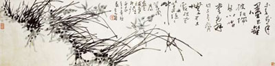 潘天寿《赠海燕墨兰》横幅(33cm×126cm),1944年作,私人收藏