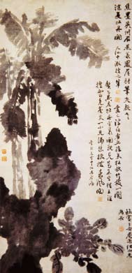 徐渭(1521-1593年),字文长,号天池,又号青藤,浙江山阴(今绍兴)人。年轻时所写的杂剧《四声猿》曾深得明朝大剧作家汤显祖的赞许。徐渭一生潦倒,北京故宫博物院藏。多次应试未第,一度精神失常,以致误杀妻子而被捕,出狱时已届暮年,至73岁时去世,真正的艺术生涯仅十余年。他曾赋诗道:半生落泊已成翁,独立书斋啸晚风,笔底明珠无处买,闲抛闲掷野藤中。徐渭的花鸟画和书法,世称“青藤体”,吸取宋、元及沈周、林良等的长处,一反吴门派文人画恬适闲雅的意趣,而直抒激荡不平的心情,大胆突破客观物象形质的局限,赋予物象以强烈的个人情感。作品或缘物抒情,或借题发挥。以狂草般的笔法纵情挥洒,形象脱略形似,纵横睥睨,墨色滋润淋漓,奔放流动,充分发挥了生宣纸的晕渗效果。现存作品如《牡丹礁石图》、《墨葡萄图》、《墨花图》等,都笔酣墨饱,淋漓尽致。清代书画家、“扬州八怪”之一郑燮(郑板桥)看见他的画,大为赞叹,曾用“五十金易天池(徐渭)石榴一枝”,还刻了一方“青藤门下走狗”的印,以示对他的仰慕。近代齐白石提及徐渭,也说自己恨不得早生三百年为“青藤磨墨理纸”,表达对他的无限尊崇。徐渭近似于狂草书法的水墨大写意,对清代大师级画 家朱耷、石涛、扬州八怪、近代画家吴昌硕、齐白石等人的画风,都极具启发意义。