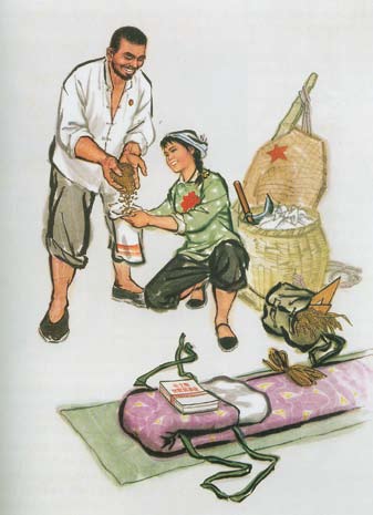 1942年,中国共产党的领袖毛泽东发表了《在延安文艺座谈会上的讲话》,提出一切文学艺术必须为政治服务、为革命战争服务、为工农兵服务的主张,明确要求文学艺术“服从党在一定时期内所规定的革命任务”。毛泽东的讲话产生了巨大影响,继而通过各种渠道向全国传播。抗战时期,包括原先的上海左翼木刻版画家,大批进步知识分子从全国各地涌向延安。在革命战争年代,中国画,尤其是那些讲究笔情墨趣的文人画,并不为工农兵所欢迎。在陕甘宁边区的艰苦环境里,仅有个别画家从事油画创作,绝大多数画家转向了政治宣传类题材的创作,形式主要是木刻版画。鲁迅对版画的大力引介、徐悲鸿推崇的写实主义,以及“素描是一切造型艺术的基础”,皆因符合毛泽东的文艺思想而成为艺术发展的主流和方向16。尽管版画几乎成为仅有的媒介,但延安艺术家仍积累了大量成功经验,尤其体现毛泽东所倡导的“古为今用,洋为中用”方面,比之20世纪30年代上海的木刻,他们的作品显得更加流畅和具有民族性,更贴近实际生活。