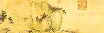 关仝(生卒年不详),长安人,早年师法荆浩,晚年笔力过之,得“出蓝”之誉,遂与荆浩并称“荆关”。他活动于秦岭、华山一带,喜画秋山寒林、村居野渡等题材。他的画风,笔简景少,但气壮意长。传世作品有《关山行旅图》与《山溪待渡图》,皆藏于台北故宫博物院。《关山行旅图》轴写高耸峰峦,深谷云林,寺庙隐于其间,近处小桥茅店,有旅客商贾往来,富于生气。所画树木有枝无干,用笔简劲老辣。《山溪待渡图》亦绘堂堂大山之景,突出山川的壮阔博大,反映北方画派的基本特征。