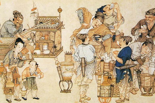 《群仙集祝图》,清汪承霈作,此图描绘了斗茶会上的仆人形象,极富生活气息。