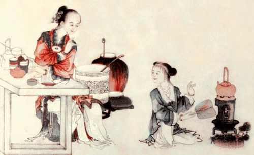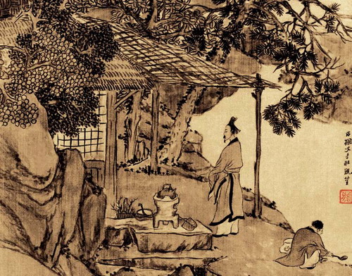 《煮茗图》,清任熊绘。