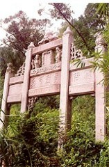 贞烈可嘉坊在顺德桂洲镇四基烟管山(现顺德丝厂内)。建于清代道光十七年(1837)。为旌表林信文之女林司观而建。县志载:“信文女,家贫,纺织养父。或艳之,掷以金,女怒詈之;又窥其父出,踰垣挺刃,将从焉,女急出,中刃而死”。坊方向正北,四柱三间两层,冲天式结构,为花岗岩石构筑。全高5.5米,面宽4.67米。正面柱顶饰石葫芦一对,两旁柱顶石狮一对。坊表上层正中石匾竖刻“圣旨”二字,井下横批刻“贞烈可嘉”四字,隶书,两旁石额刻隶书,“厉俗”“旌风”,柱刻“道光十七年为林信文之女林司观建,大良张源盛造”等字。“第一洞天”牌坊 在西樵山白云洞会龙湖旁,横跨白云古道中。建于清乾隆年间,咸丰八年(1858)重修,花岗石建造,为两柱单间冲天式牌坊,高2.5米,额正面刻隶书“第一洞天”四字,为黎简所书,石柱刻有隶书对联“千重云气排丹阙,方古泉声护洞门”,是黎简书。
