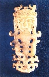 戴卷筒式冠巾、穿华丽服装的贵族男子(河南安阳殷墟妇好墓出土玉人)