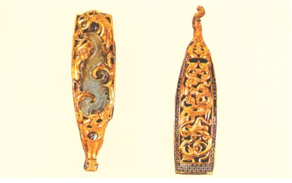 黄金嵌玉带钩(传世实物,原件现在美国哈佛大学弗格美术馆)