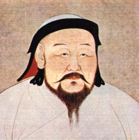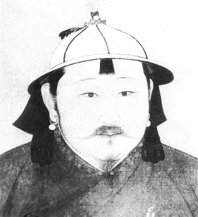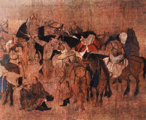甘肃安西榆林窟元壁画,穿翻折领小袖袍的行香蒙古贵族