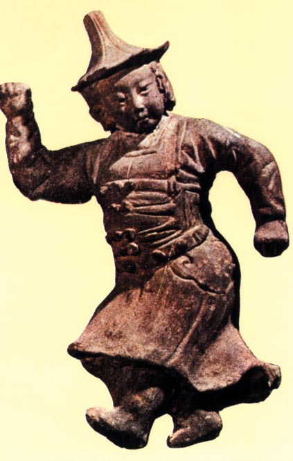 戴瓦楞帽、穿辫线袄的男子(河南焦作金墓出土陶俑)