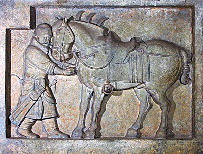 六骏是李世民在打江山时驰骋疆场时所乘过的六匹骏马,他们都为大唐帝国的奠基立下了丰功伟绩。唐太宗李世民于贞观十年(公元 636)十一月昭令画家阎立本先画出六骏的图形,再由雕刻工艺家阎立德依形复制刻于石上,由当时的大书法家欧阳询将唐太宗亲自书写的四言赞美诗并由殷仲容用隶书刻在原石上角,刻成后,放置在昭陵北麓的祭坛之内。