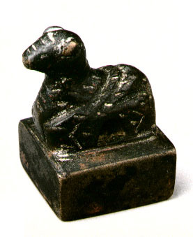 汉代在西域昆仑山北麓分布有羌族,称南山羌,它与西域其他各族都接受汉政府的统辖。此铜印正方形,卧羊钮,阴刻篆文“汉归义羌长”5字,为汉政府发给羌族首领的官印,其中“归义”是汉政府给予其统辖的边远少数民族首领的一种封号。