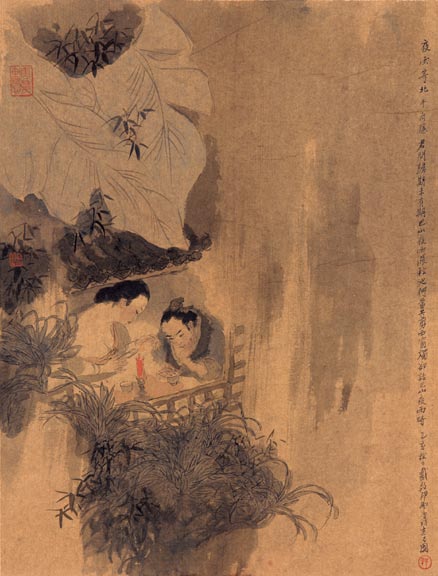 《夜雨寄北》诗意图,今人戴敦邦绘。