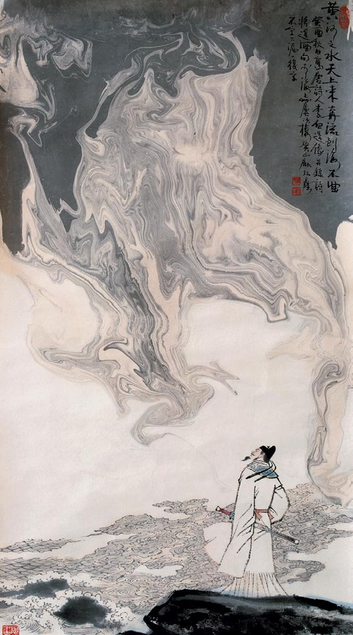 《将进酒》诗意图,今人顾炳鑫绘。