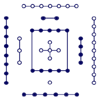 西方:四个黑点在内,九个白点在外,表示白虎星象,五行为金。