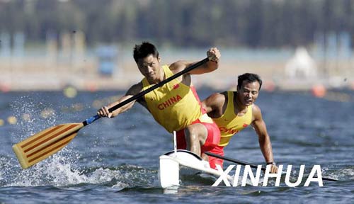 2004年8月28日,中国选手孟关良(左)/杨文军夺得雅典奥运会双人划艇500米赛冠军。成为奥运会上中国水上项目夺得的第一块金牌。(来源: 新华社资料照片)