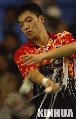 2003年8月27日,印尼羽毛球公开赛头号种子、中国羽毛球男单选手陈宏在印度尼西亚巴淡举行的印尼羽毛球公开赛第二轮比赛中发球。最终,陈宏以2比0战胜马来西亚选手迪基·阿兰·泰,顺利晋级。 (来源:新华社)
