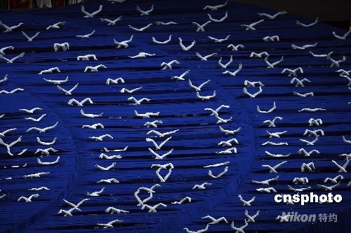 图为开幕式上精彩的文艺表演《飞翔》。(中新社/盛佳鹏)