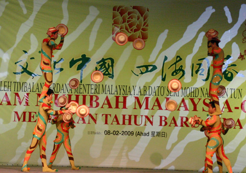晚会演出了被马来西亚团结、文化、艺术及文物部宣布为文化遗产的高桩舞狮、马来西亚本土独创而享誉海外的二十四节令鼓以及由多元种族乐手组成的华乐团演奏马来歌曲,马来歌后努尔哈莉莎用中文演唱《月亮代表我的心》。