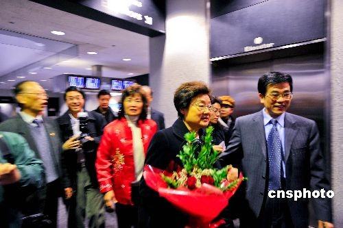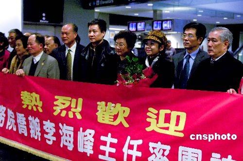 当地时间2月10日,中国国务院侨办主任李海峰率领“文化中国·四海同春”艺术团一行抵达旧金山,开始为期4天的艺术之旅,与当地华人华侨共庆新春。中国驻旧金山总领事高占生、华商总会会长黄锡海及顾问池洪湖、魏需逊等侨界代表到机场迎接。(中新社/陈钢 摄)