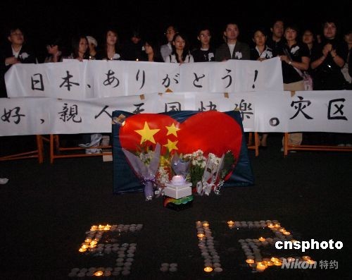 据了解,自大地震发生之后,在日华人华侨和留学生积极组织各种救助四川震区的活动,为灾民捐款捐物。几位热心人通过网络论坛上率先发起举行烛光祈福活动的倡议,并在短短几天内得到广泛响应。网友们自费购买蜡烛、手电,制作了小白花和横幅,以此寄托对灾区人民最大的哀思。(完)