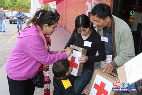 大多伦多中华文化中心、太古广场商户及多伦多华语电台,16日在太古广场举办连续12小时的“爱心传千里、四川赈灾大行动”,通过义卖、拍卖精品、义唱等,估计筹得善款近10万元。士嘉堡约克区华商会在锦绣中华商场举行“四海一心、同舟共济”义卖赈灾筹款。密西沙加华商会在密市黄金广场及元明超级市场内义务为灾民筹款。多伦多大学中国学生学者联谊会等各中国学生组织,于5月20日至5月23日在多伦多大学设募捐箱接受捐款。世界宣明会正急送首批物资给1万位灾民,包括毛毯及帐篷给予无家可归的儿童及家庭……(捷克佳)