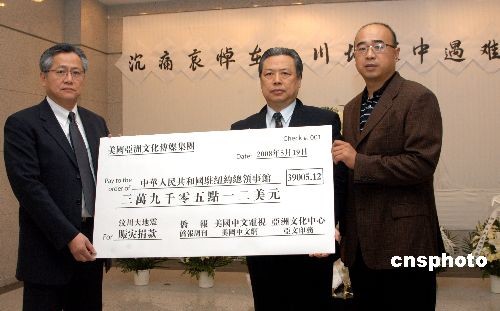 介绍会前,纽约总领馆收到的最新一笔捐款是来自美国亚洲文化传媒集团及其属下的《侨报》、美国中文电视等机构全体员工的39000多美元捐款。
