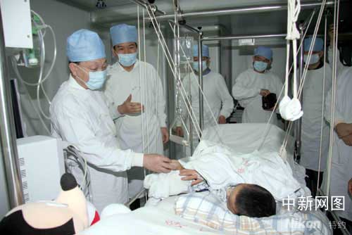 “还痛吗?”在重症监护室,马儒沛主任拉着岳强的小手,轻声询问。“还有点痛,谢谢叔叔、伯伯们。”小男孩很真切地回答,看上去心情倒放松。