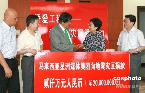 据马来西亚星洲媒体集团总编辑萧依钊女士介绍,自大地震发生以来,马来西亚常青集团已经陆续为灾区捐赠了五千余万元人民币。为支持灾区灾后重建,此次马来西亚星洲媒体集团又再捐出两千万元人民币。此外,他们还将在灾区展开长期助学活动,资助那些家庭贫困的学生完成学业。