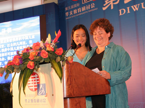 在11月4日的第五届国际华文教育研讨会开幕式上,来自美国的领养中国儿童家庭代表柯林•韦斯特女士和她的中国女儿索妮亚•韦斯特做了发言。以下是发言全文:
