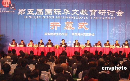 由国务院侨办和山东省政府联合主办的第五届国际华文教育研讨会4日在青岛开幕。会议的主题是“大力拓展华文教育,促进华社和谐发展”,来自30多个国家和地区的400多名代表参会。(刘宝森 徐冰))