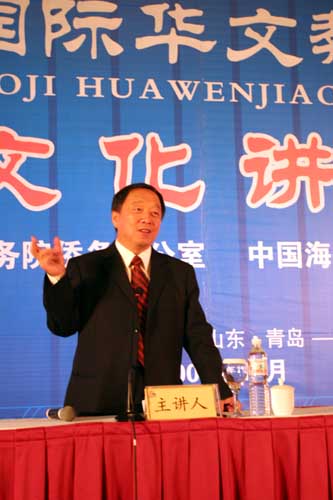 他谈到,中国文化正在进入一个新的发展时期。随着中国综合国力的提升和世界地位的提高,“国学热”、“华文教育热”、“汉语热”不断升温。他指出“热”是好现象,集合中华文化源远流长的独特内涵,但必须将其放置于恒温的状态来细心培育,才能真正的感受并体会中华文化独特的美。